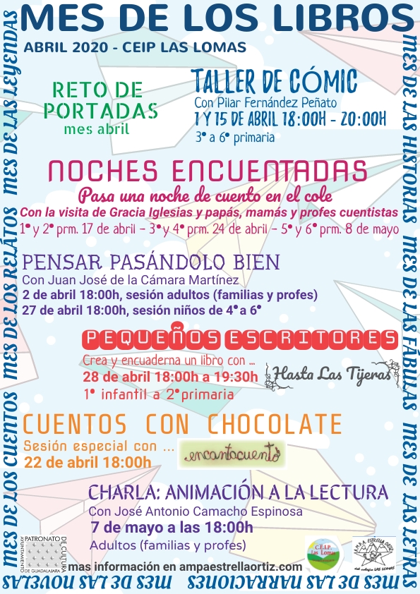 Nos gustan los libros, nos gusta leer y nos gusta hacer participes a nuestros nuestros hijos e hijas del placer de la lectura. Por eso, en abril no vamos a celebrar el día del libro, ni la semana del libro, si no El Mes de Los Libros. Y lo haremos con muchas actividades, girando siempre en torno a los libros, que estamos seguras de que vana a gustar a las familias.