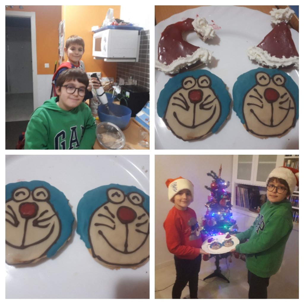 4. La decoración es libre.. nosotros hemos pensado que quedarían divertidas con la carita de Doraemon y gorrito de papa Noel ( que es un dorayaki recortado).