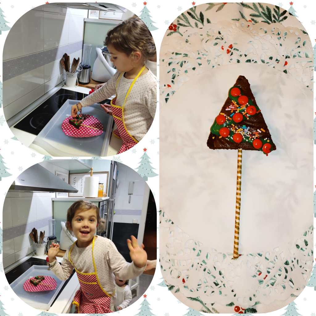 7. Con el chocolate blanco y el colorante verde hemos hecho los espumillones y con los mini lacasitos las bolas del árbol.