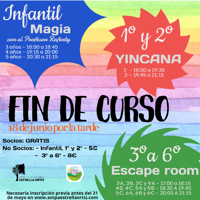 A pesar de no poder hacer un fiesta de fin de curso como las de siempre, queremos que el último día de curso los niñ@s puedan hacer algo diferente y divertido.