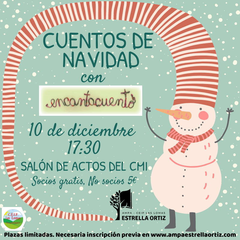 El número de plazas está limitado al aforo de la sala y es necesario inscribirse previamente AQUÍ. Desde hoy, hasta el 30 de noviembre sólo se podrán inscribir socios del AMPA Estrella Ortiz y a partir del día 1 de diciembre, hasta completar aforo, se aceptarán inscripciones de otras familias.