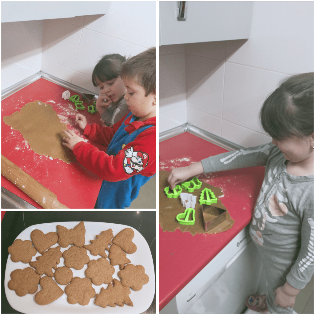 5. Cortar las galletas con moldes y amasar los restos tantas veces como haga falta para gastar la masa.