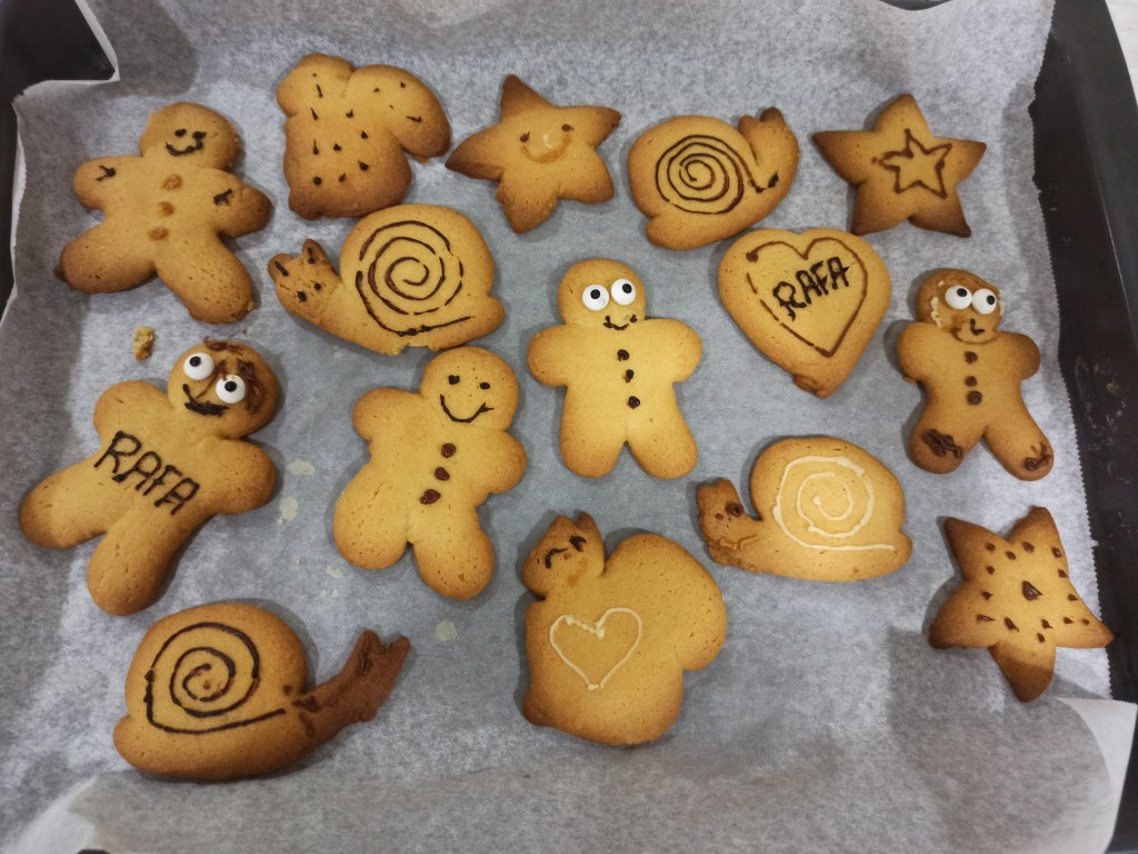- Introducimos la bandeja en el horno durante 12 -13 minutos. En el momento que veamos que se empiezan a dorar los bordes las sacamos. Si veis que están blanditas no las dejéis más.
