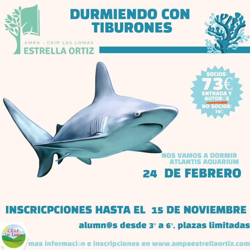 En vista de que se han agotado las plazas para la Noche en el Museo, y muchos niños se habían quedado sin plaza, hemos solicitado plazas para la actividad Durmiendo con Tiburones que se realiza en Atlantis Aquarium