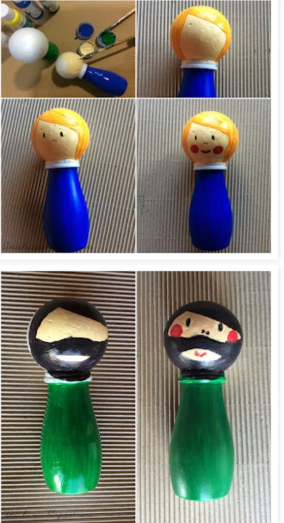 Todas las figuras se realizarán a partir de los botes de yogures bebidos tipo actimel/danacol, etc. pegando en su parte superior a modo de cabeza, una bola de poliespan o similar, partiendo de la utilización de los botes de yogur bebido se podrán emplear también cualquier tipo de material facilitando así, la creatividad de las familias ( telas, goma eva, plastilina, …)