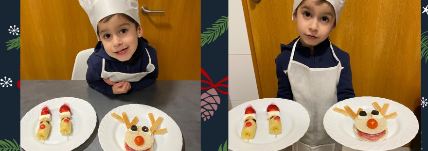Ingredientes Brochetas de Santa: plátanosfresasnubespasaslacasitospalos pinchos morunos Sándwich Rodolfo: pan bimboaceitunasqueso frescosalchichón u otro fiambre (chorizo, lomo, salami, etc) Preparación Brochetas de Santa: Se parten los plátanos en dos mitades. Se pinchan en el palo, se pone la fresa y la nube de gorro. Se clavan las pasas a modo de ojos y el lacasito… Sigue leyendo 62- POMAR CABRERA- Brochetas de Santa y Sándwich Rodolfo