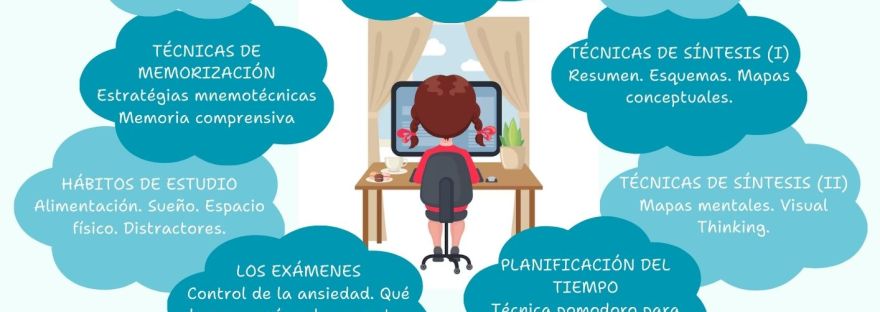 Para ayudar a los niñ@s de 5º y 6º en la organización del estudio, os proponemos la realización de un curso de técnicas de estudio. Contenido y duración del curso El curso tiene una duración de 9 horas, distribuido en 6 sesiones de 90 minutos y el contenido es el siguiente: Organización y gestión del… Sigue leyendo Curso de Técnicas de Estudio