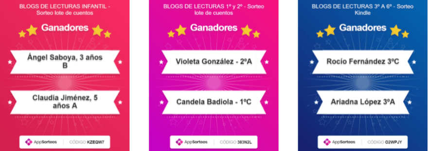 Realizamos los últimos sorteos de los 4 lotes de cuentos y los 2 kindle , entre los participantes de los blogs de lecturas Las Lomas Entre Cuentos y Las Lomas Entre Libros. ¡Enhorabuena a los ganadores! Premio especial Tenemos un peque de 3 años, Enol Catalán, que nos ha mandado 8 dibujos a lo largo… Sigue leyendo Las Lomas entre libros y cuentos: sorteos del 3er trimestre