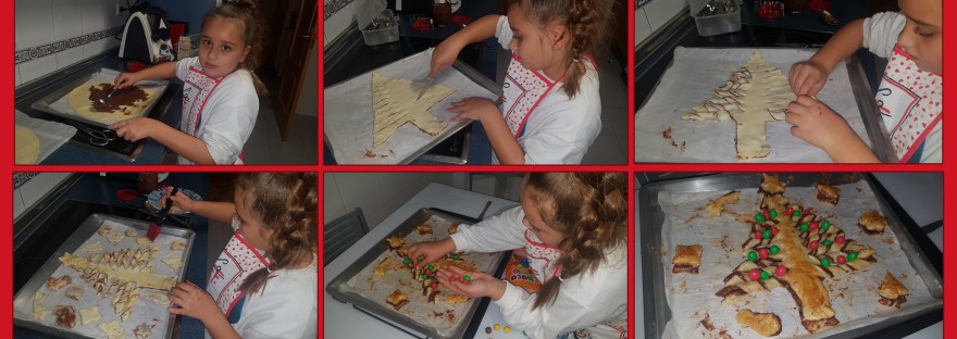 Ingredientes 2 planchas de hojaldreChocolate fundidoHuevo para pintar el árbol. Preparación Extender una de las planchasPintar con chocolatePoner la otra plancha encimaDarle forma de árbolPintar con huevo15 minutos a 180 grados en el horno hasta que se dore. El resultado Si os ha gustado, recordad, ¡un comentario es un voto!