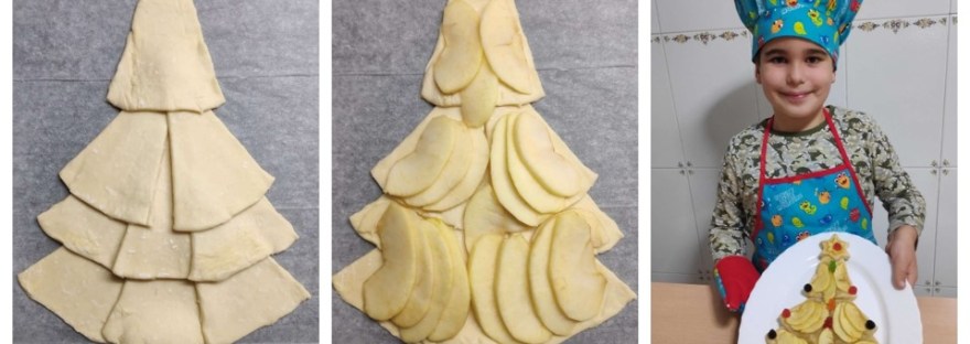 Ingredientes Dos planchas de hojaldre.Nocilla.1 huevo. Preparación Preparamos en una bandeja de horno la primera base de hojaldre y untamos la nocilla por encima. Ponemos la segunda base de hojaldre encima haciendo coincidir los bordes. Cortamos la forma de un árbol de navidad y con el hojaldre restante hacemos estrellas con moldes. Hacemos tiras en lo que serán las ramas y con ellas hacemos tirabuzones, haciendo giros… Sigue leyendo 25 – CARMONA VIVAS – Árbol de Navidad de hojaldre y nocilla