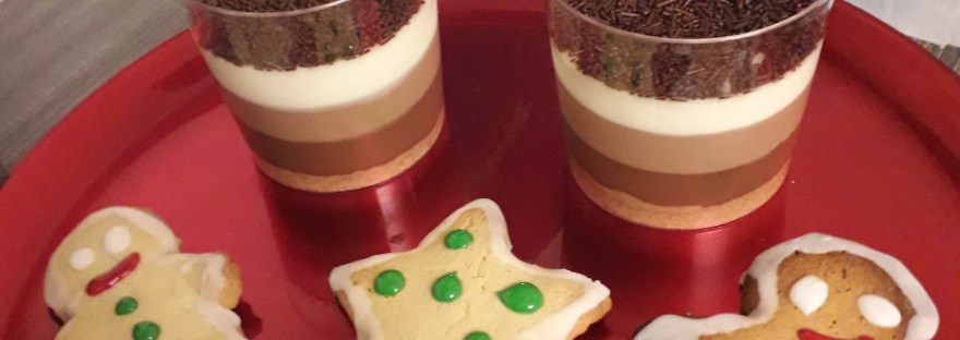 Ingredientes Para los vasitos de tres chocolates: 150gr de chocolate negro150gr de chocolate con leche150gr de chocolate blanco 150gr de azúcar750ml de leche entera750ml de nata líquida 3 sobres de cuajadaGalletas molidas y mantequilla para la base. Para las galletas de Navidad: 120gr de azúcar glass. 400gr de harina de repostería240gr de mantequilla 1 huevo. Preparación Vasitos de… Sigue leyendo 52 – ELGUETA MÍNGUEZ – Vasitos de tres chocolates y galletas de Navidad