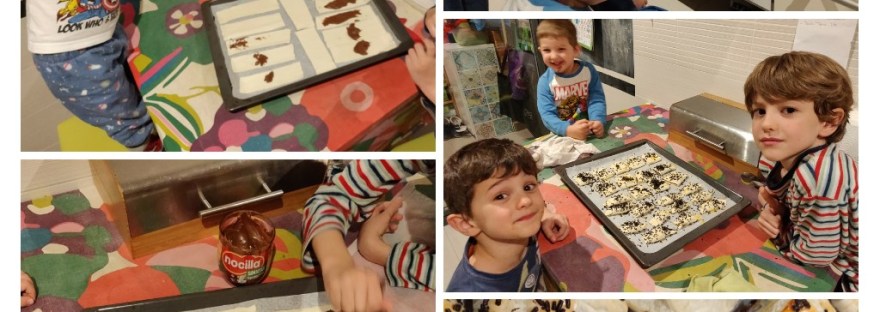 Este es el almuerzo que preparó ayer Martina y del que dará buena cuenta a lo largo del día. La Receta En cuanto a la receta, es bastante sencilla para que los peques puedan hacerla, sólo hace falta masa de hojaldre que ellos pueden recortar como quieran haciendo las formas que más ilusión les haga.… Sigue leyendo 69 – RIENDAS PALAFOX – Hojaldres Rellenos de Nocilla Con Mensaje Navideño